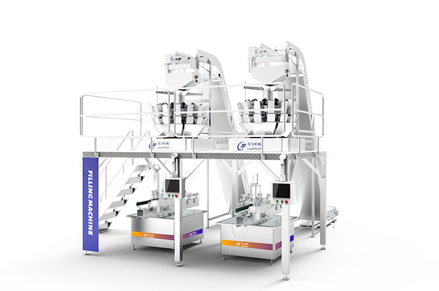 多頭秤灌裝機又稱自動固型固裝罐機是用于各類固體原料自動稱重、灌裝于玻璃瓶、馬口鐵罐等容器內的設備。可完成固體原料的自動計量、送料、裝罐、成品輸送的全部包裝過程。達到生產線的自動化,機身整體采用SUS304不銹鋼部件,美觀衛生、制造精良、使用方便、運行穩定。