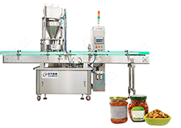 專為各類固體原料設計,能夠自動完成稱重與灌裝任務,適用于玻璃瓶、馬口鐵罐等多種容器。其自動化流程涵蓋了固體原料的計量、送料、裝罐以及成品輸送,確保了生產線的全面自動化。機身構造選用SUS304不銹鋼部件,不僅外觀美觀衛生,制造工藝也極為精良,使用方便且運行穩定。