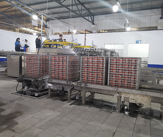 客戶的產品是馬口鐵罐紅燒肉罐頭,根據客戶的廠房面積、物料、包材特點及產量,我們為客戶提供紅燒肉罐頭生產線設備(磁力空罐卸垛、空罐洗罐、輸送、提升、實罐清洗、裝卸籠、吹干、碼垛等設備),投產期間使用良好,后期客戶又和我司簽訂了午餐肉罐頭生產線設備合作。